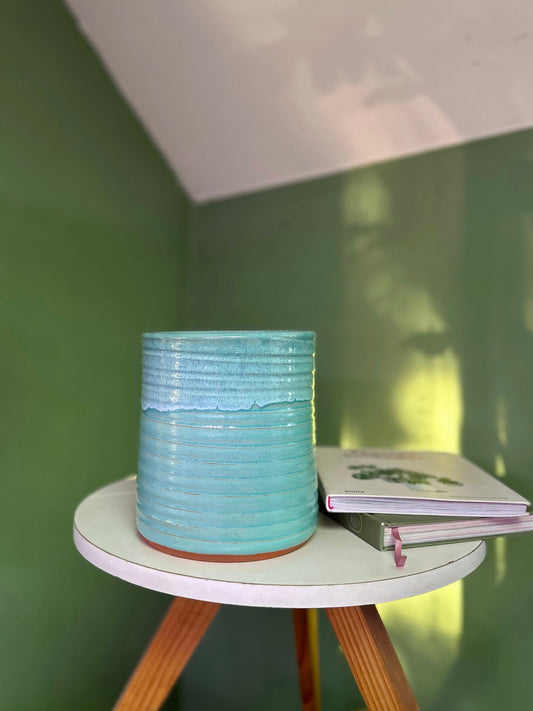 Agotada 😢Macetero de ceramica azul 15,5 x14 cms