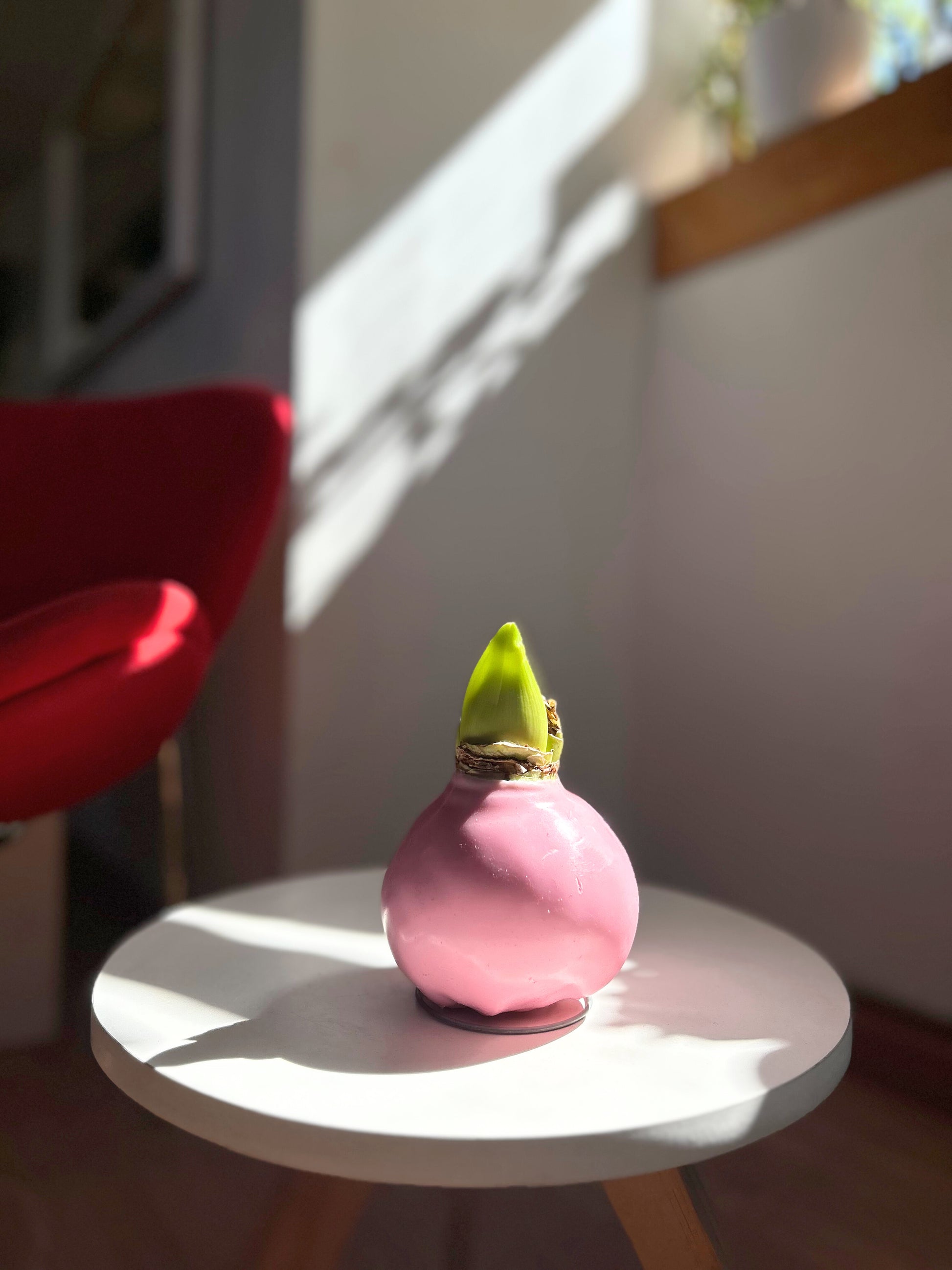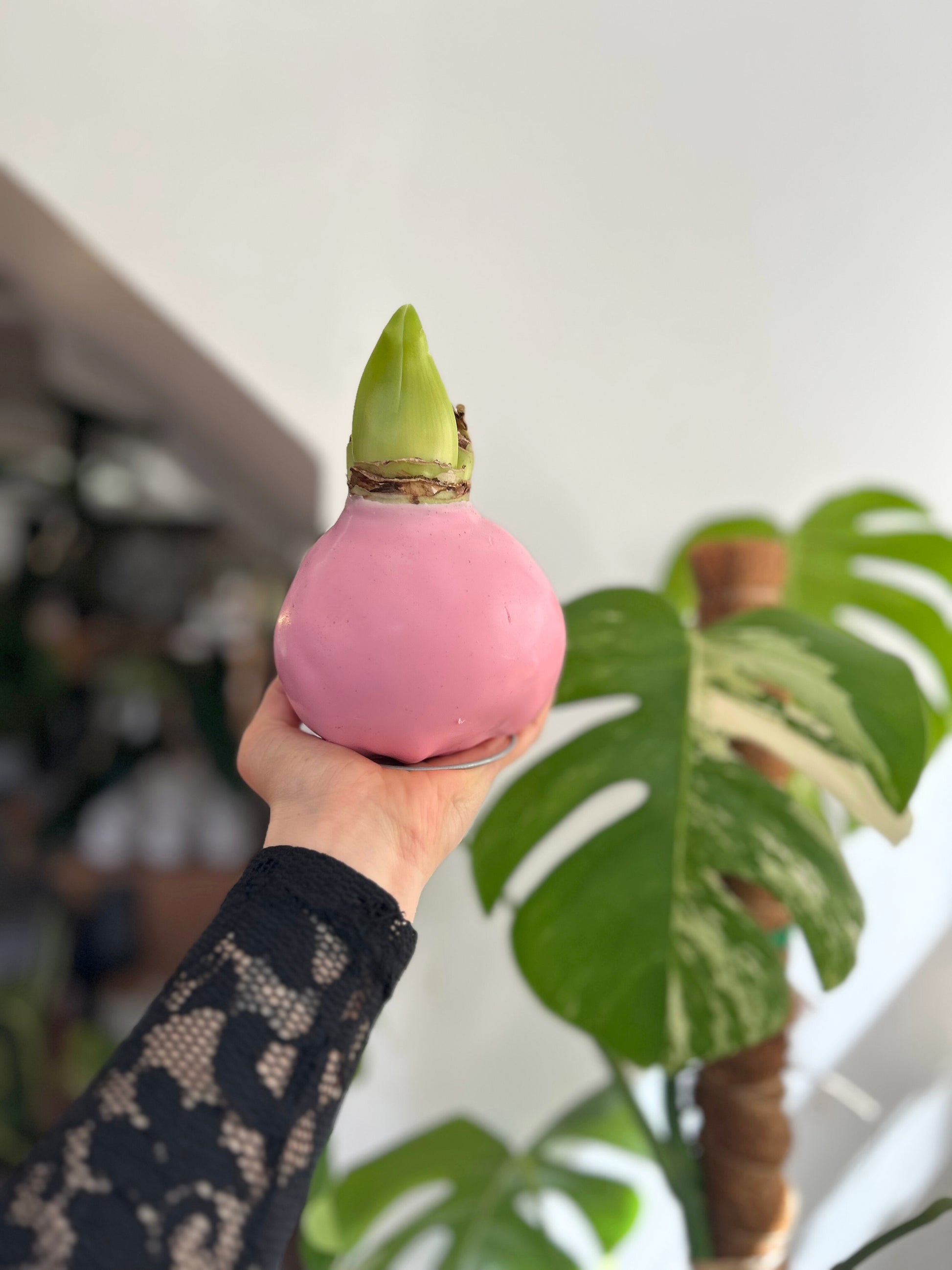 La Amaryllis Wax Cherry Blossom es una flor blanca con rosado elegante y sorprendente que no necesita tierra ni agua para florecer. Su bulbo está cuidadosamente recubierto con una capa decorativa de cera especial, lo que la convierte en una planta 100 % libre de mantenimiento y perfecta para cualquier espacio.