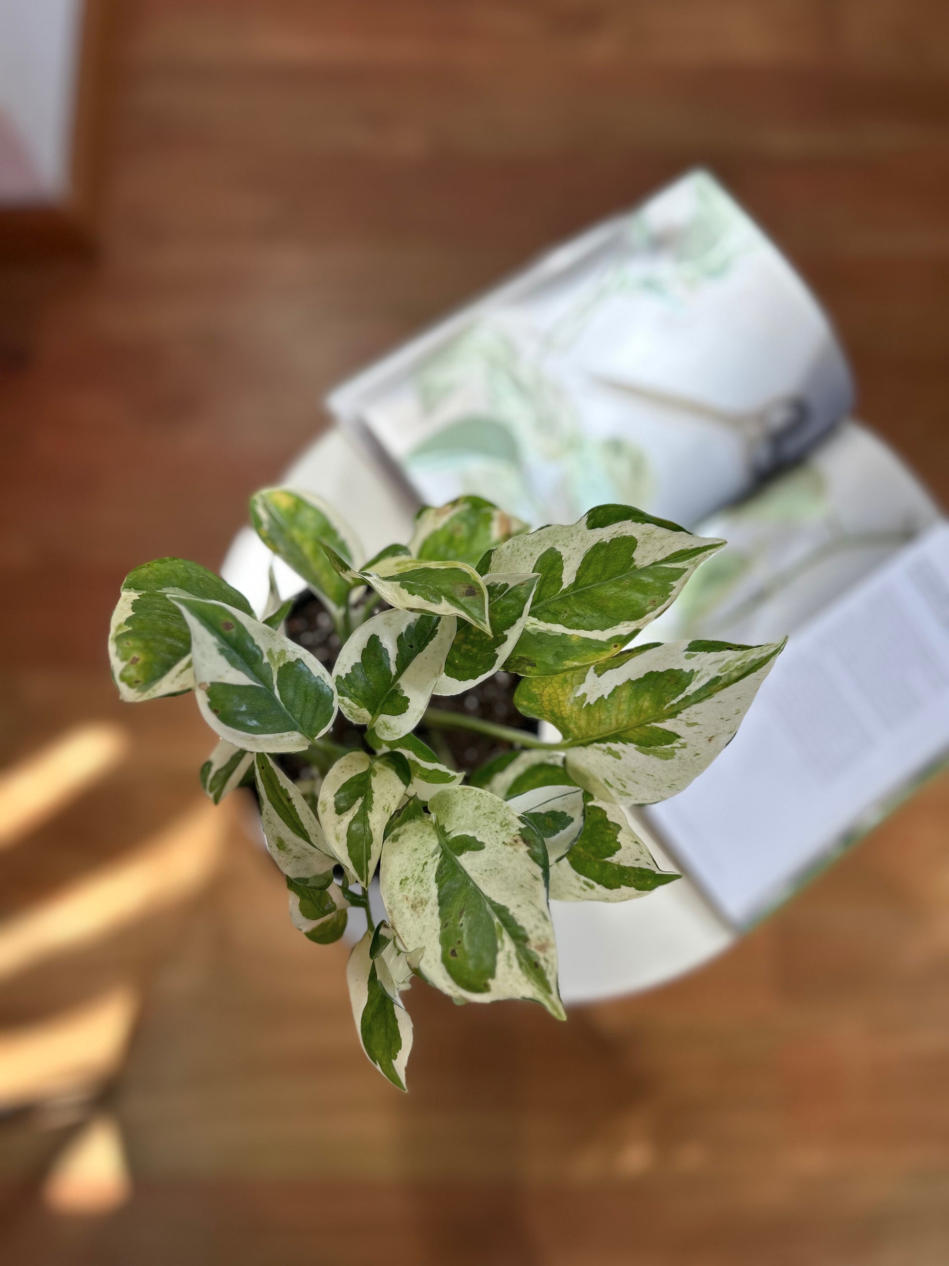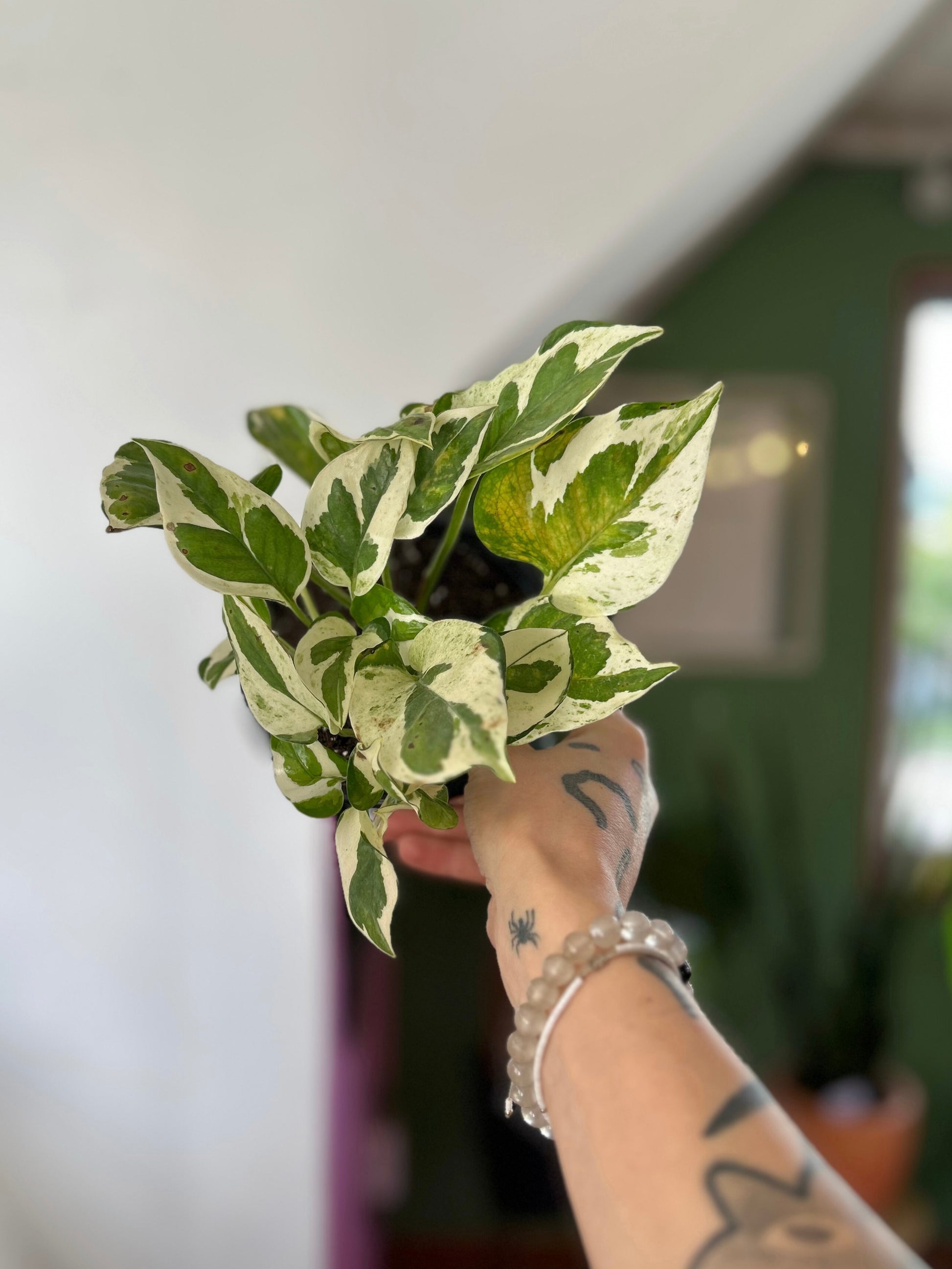 Las hojas de este Potus son su mayor atractivo. En forma de corazón y con un patrón de coloración único: un verde intenso combinado con manchas de color blanco cremoso, que le dan un aspecto muy llamativo y variado.