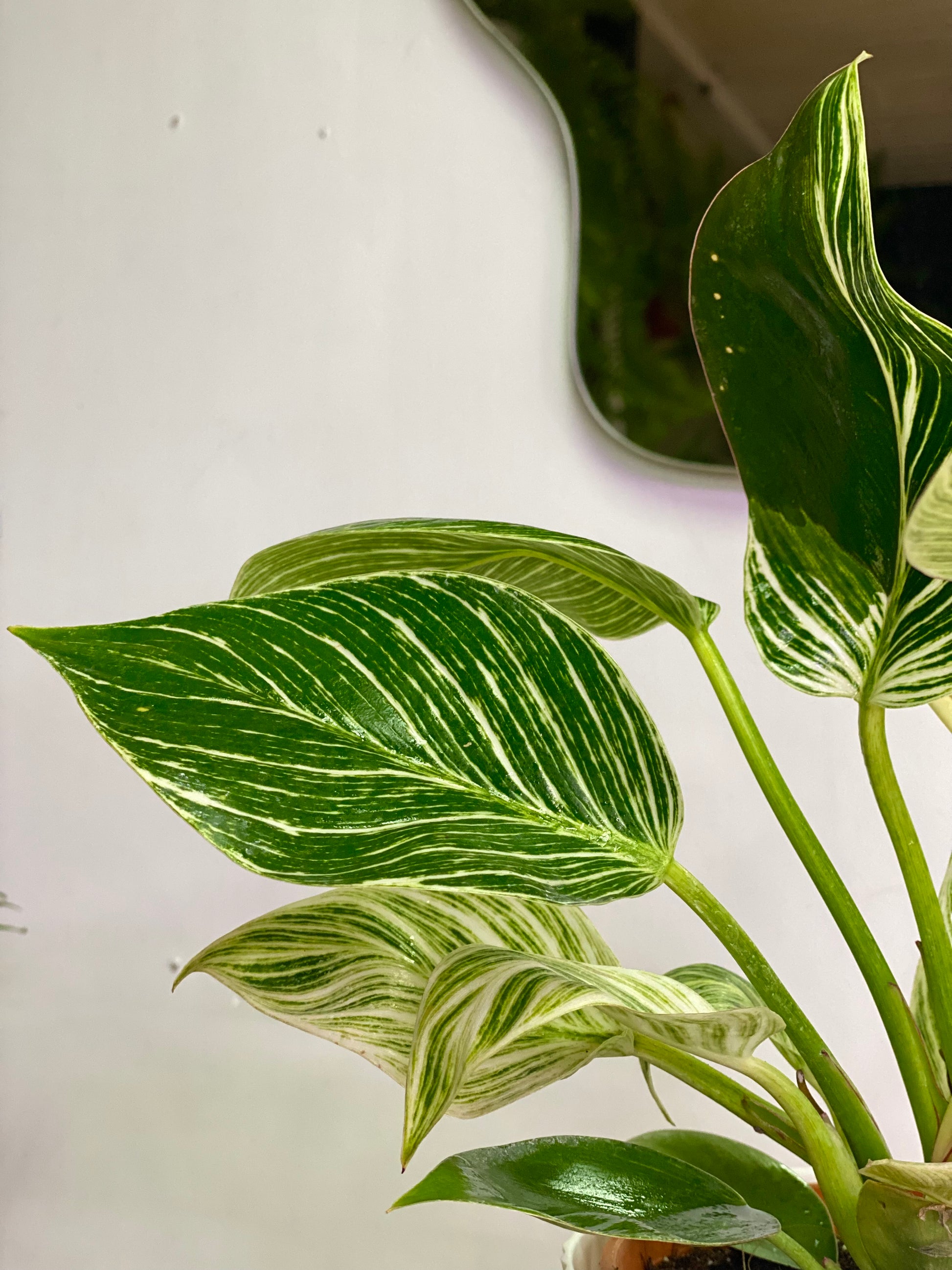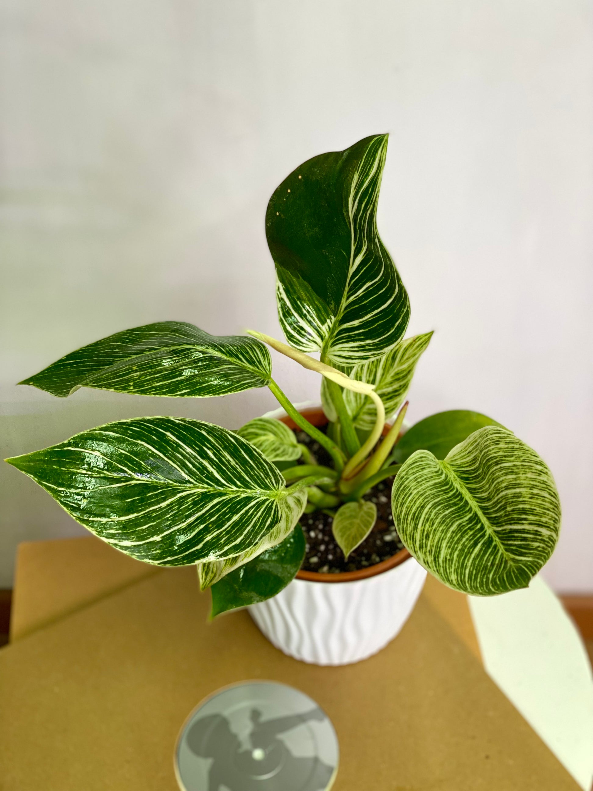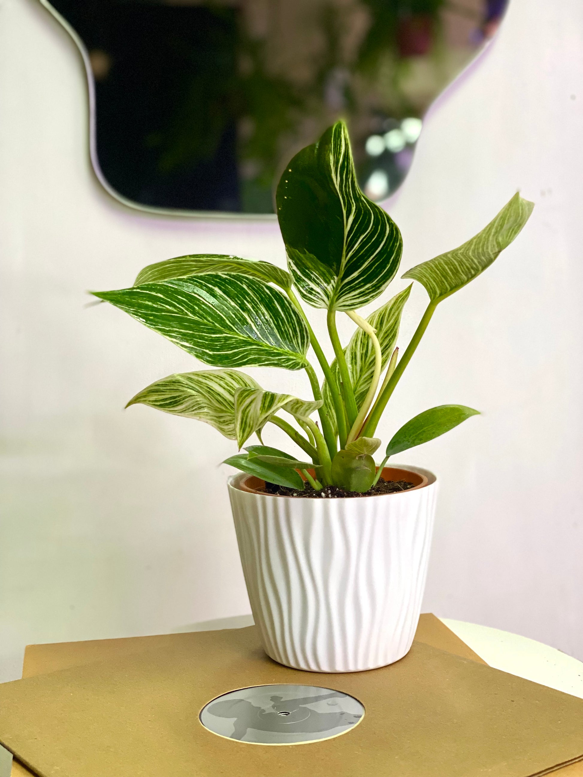 El Filodendro Birkin es el favorito de muchos por sus hojas verde intenso con finas rayas blancas que la hacen parecer cebra, lo que la hace muy llamativa y en ningún caso pasa desapercibida, seguro se robará la atención de quienes visiten tu hogar. Es ideal si buscas un Filodendro más compacto y de fácil cuidado.