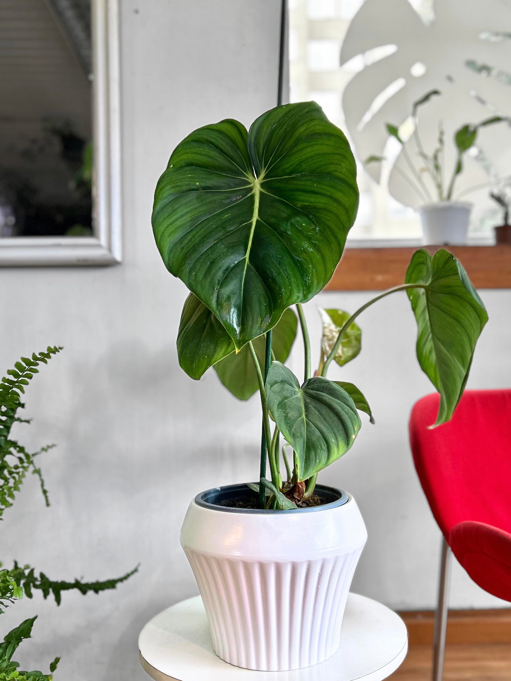 Crecimiento: es un filodendro rastrero (no trepador). Su rizoma crece horizontalmente, por lo que se desarrolla mejor en maceteros anchos y bajos.