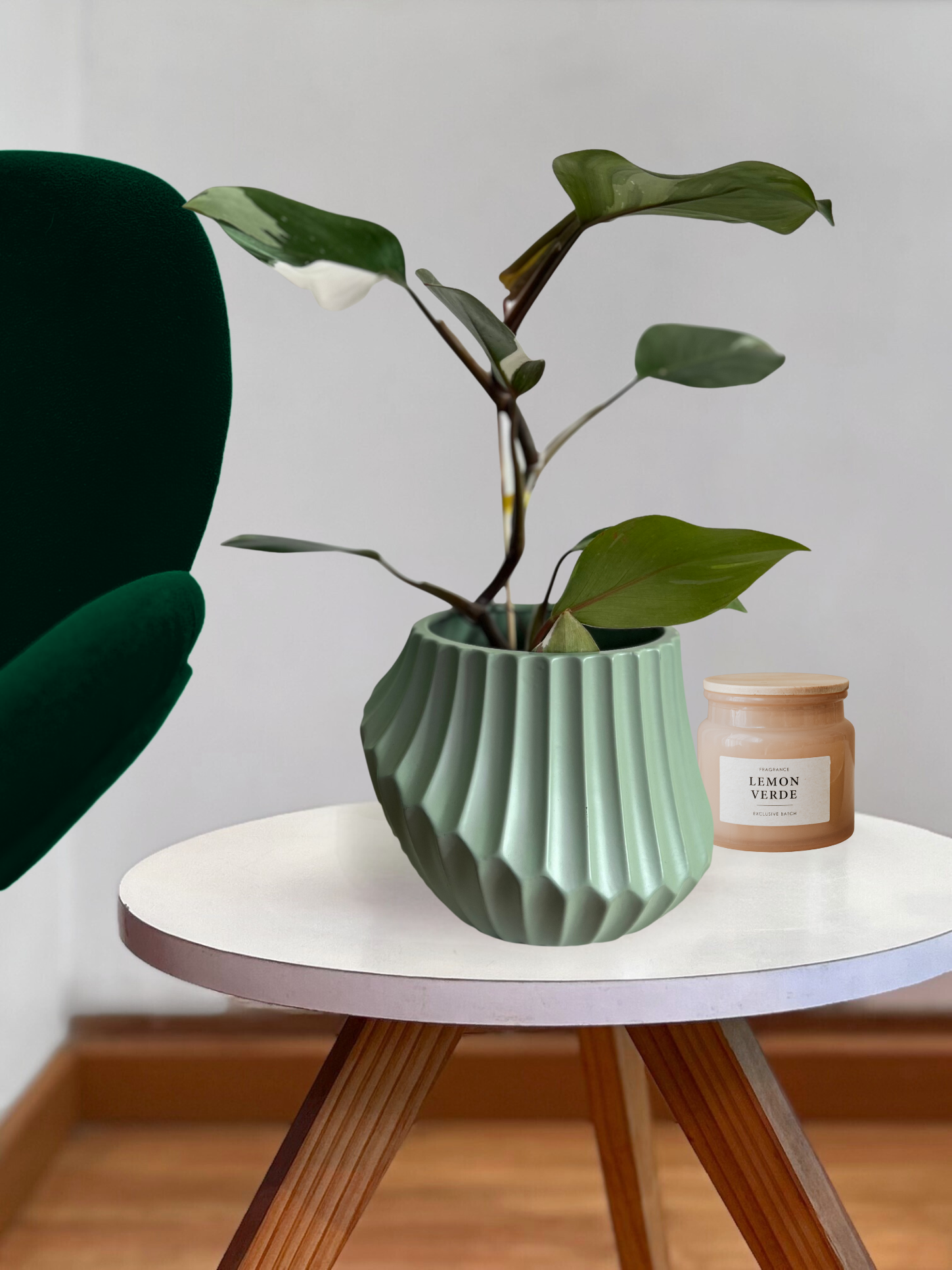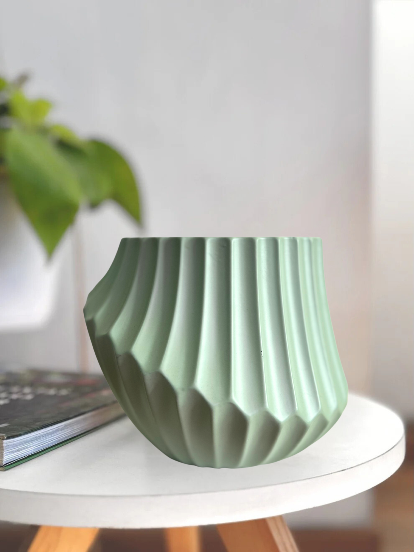 Macetero cerámica asimétrico verde agua 21x15 cm