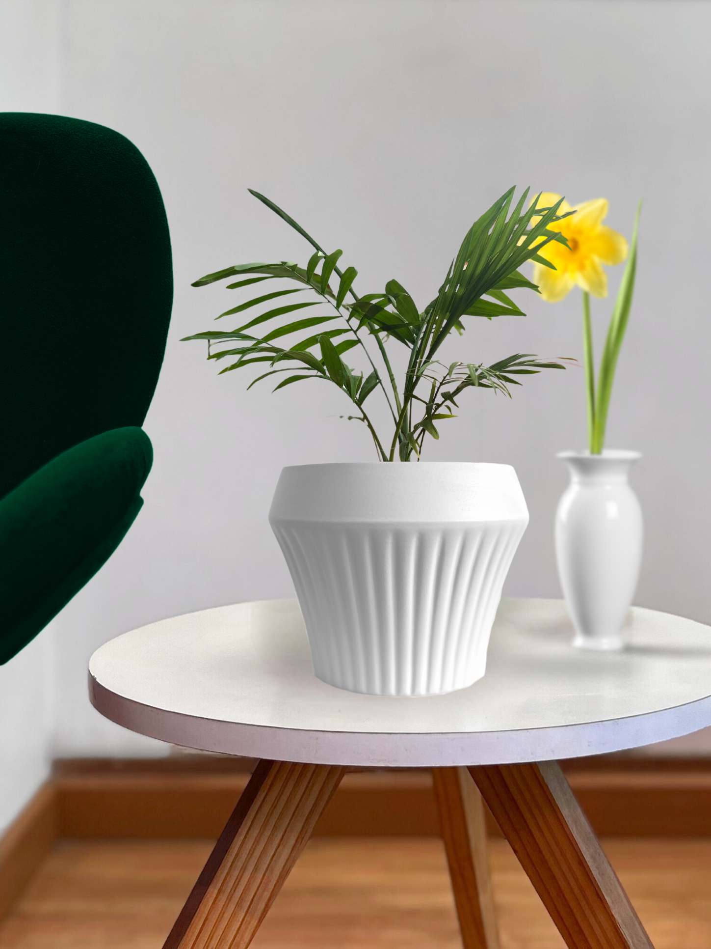 Macetero de cerámica blanco con originales forma que aporta elegancia y modernidad al diseño.