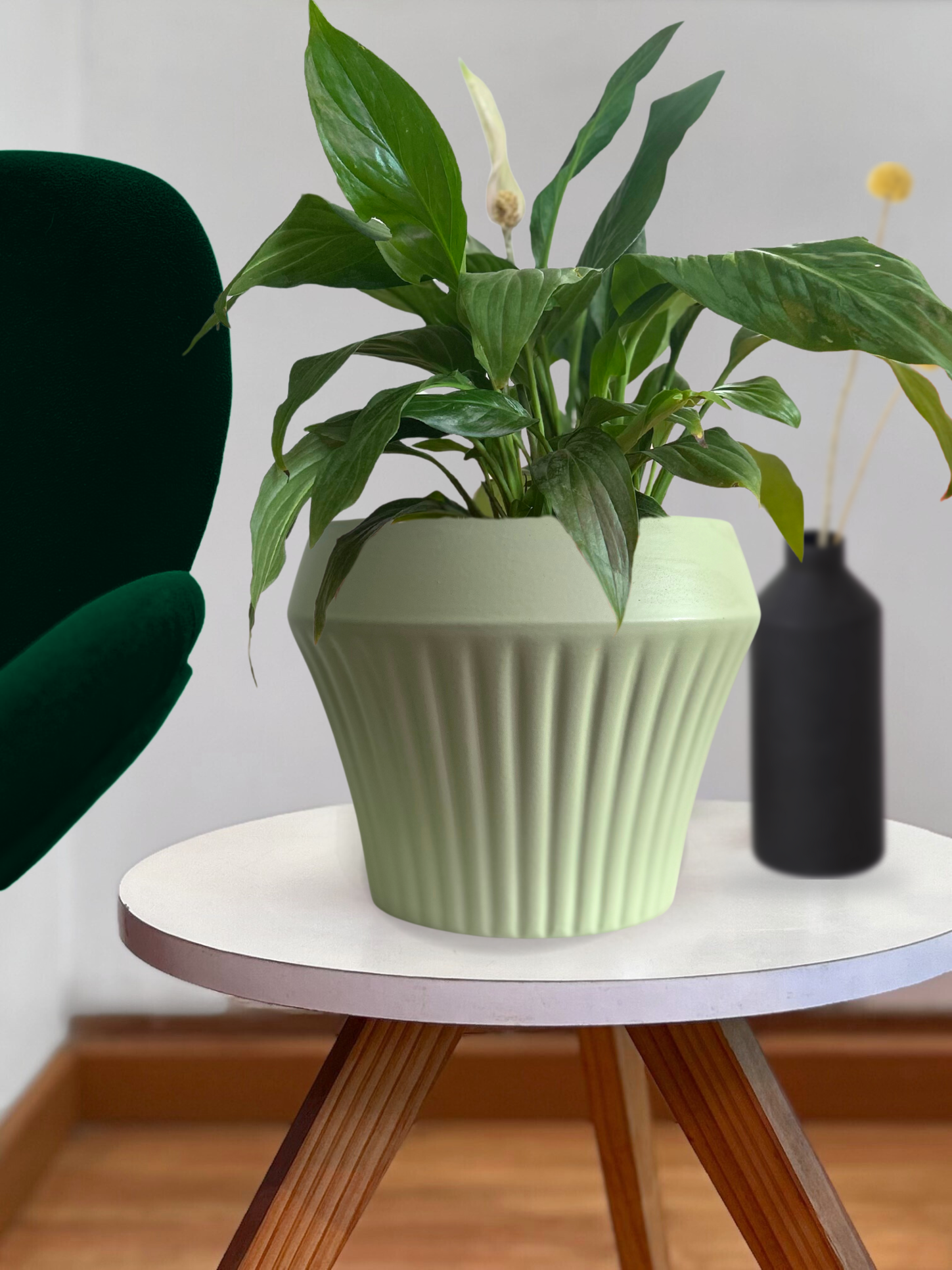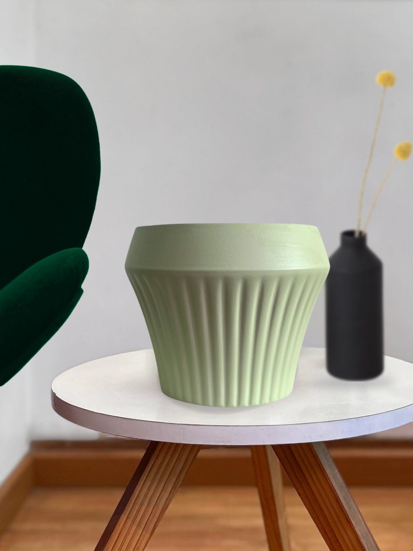 Macetero de cerámica verde agua con original forma que aporta elegancia y modernidad al diseño.