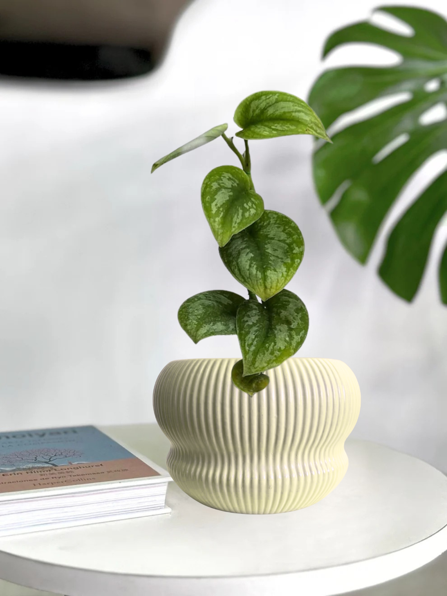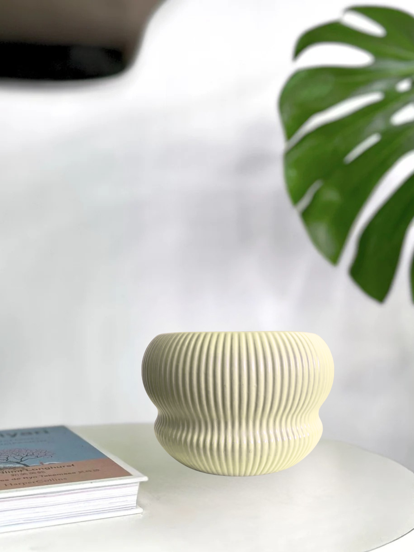 Macetero de cerámica con original forma que aporta elegancia y modernidad al diseño.