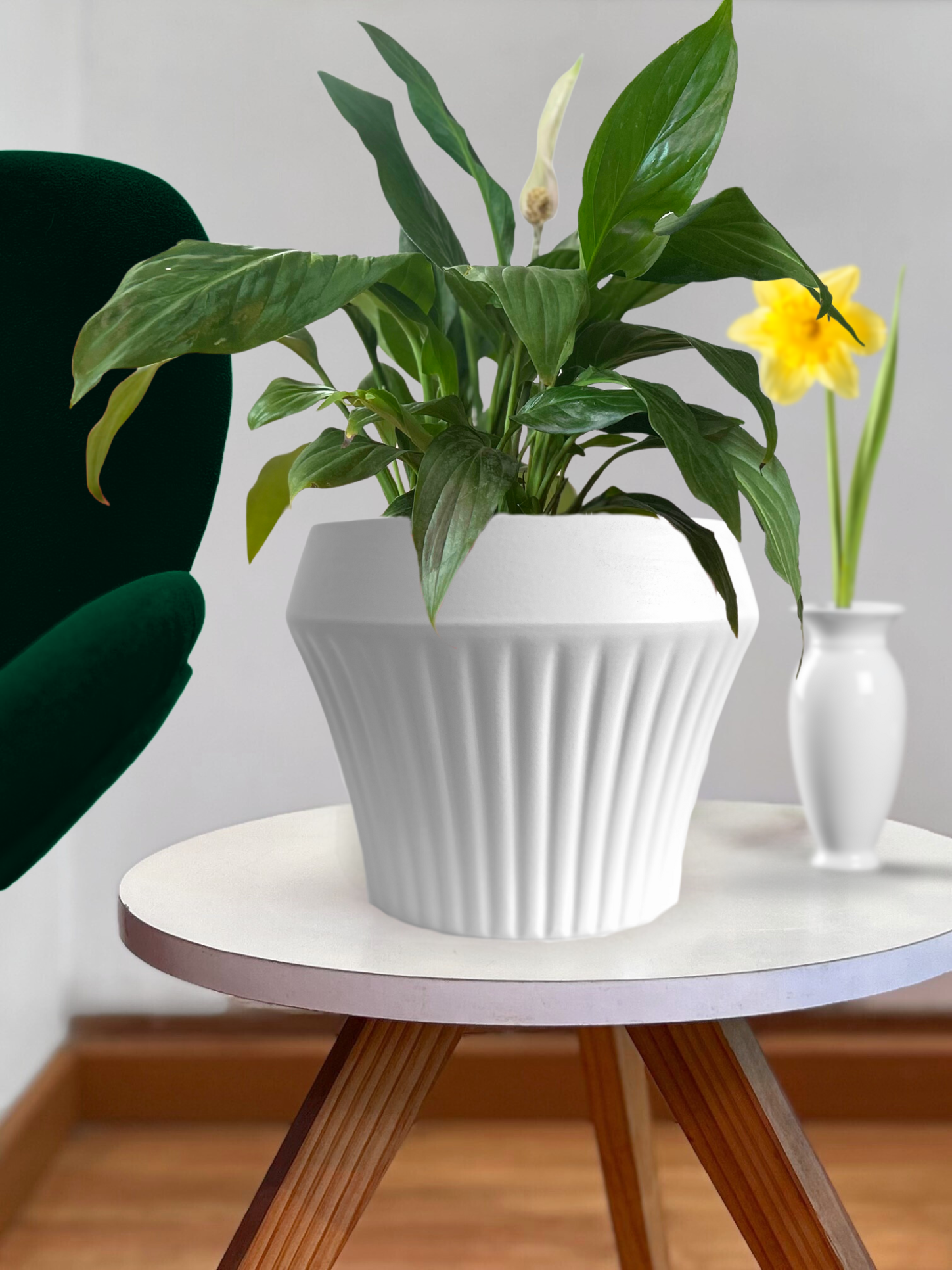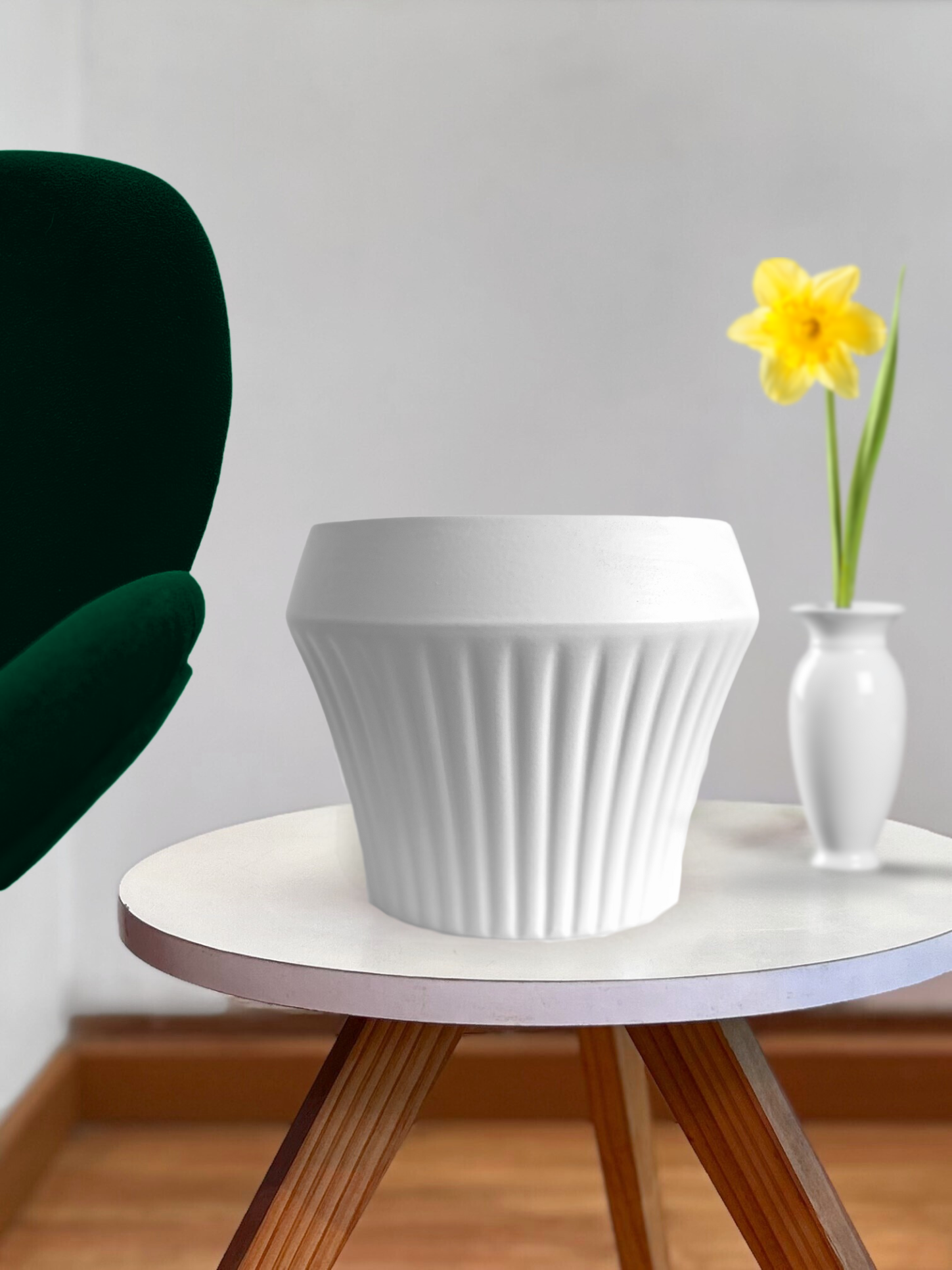 Macetero de cerámica blanco con originales forma que aporta elegancia y modernidad al diseño.