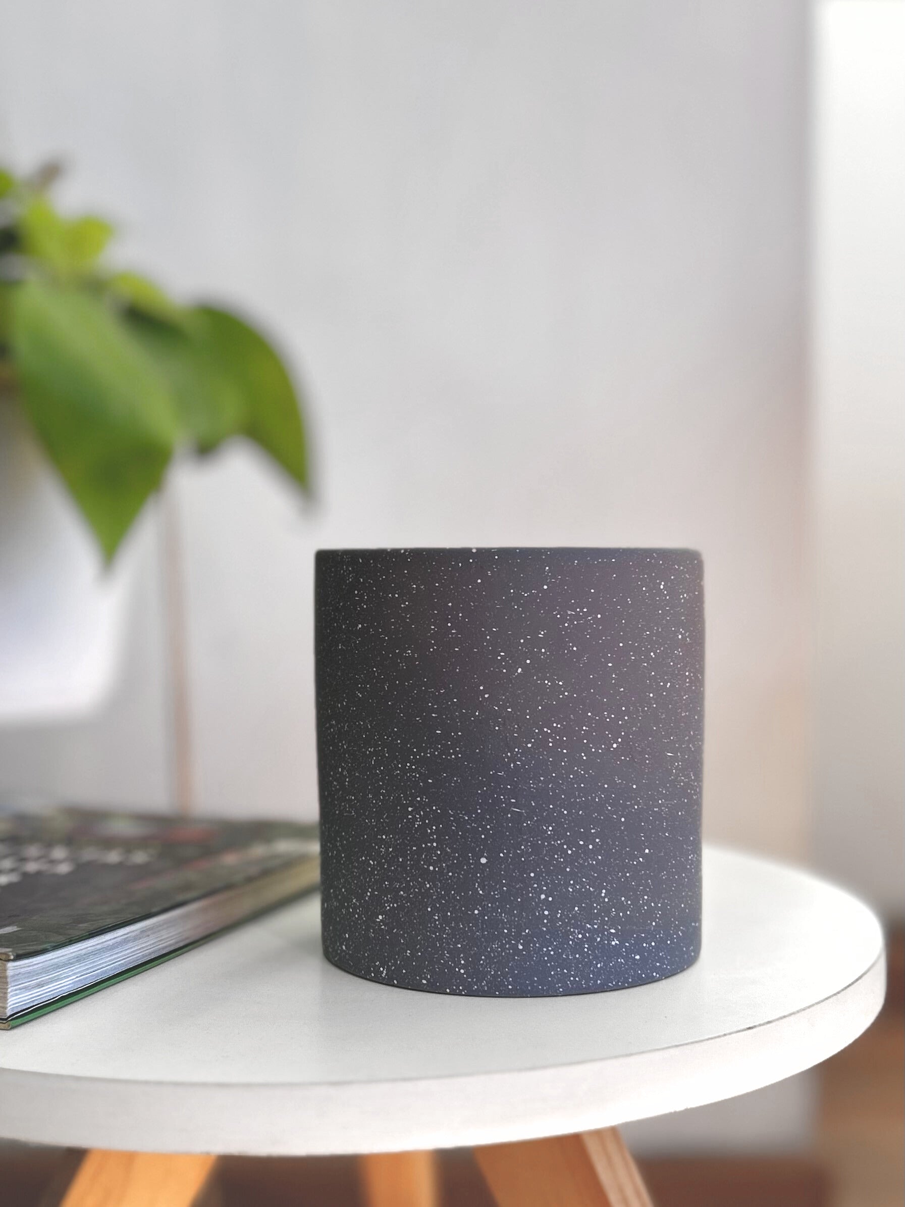 Macetero de cerámica gris que simula el concreto. Diseño minimalista y moderno para resaltar tus plantas favoritas