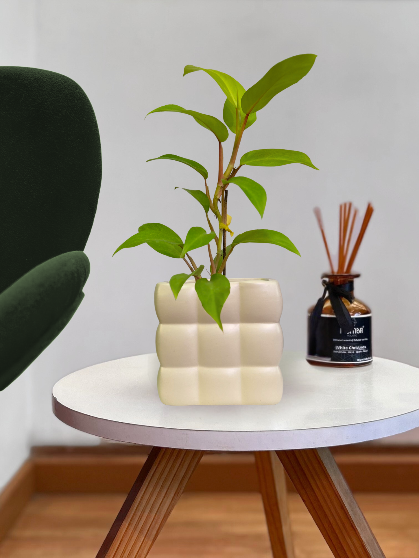 Macetero de cerámica con forma cuadrada y diseño de cuadros. Original y moderna