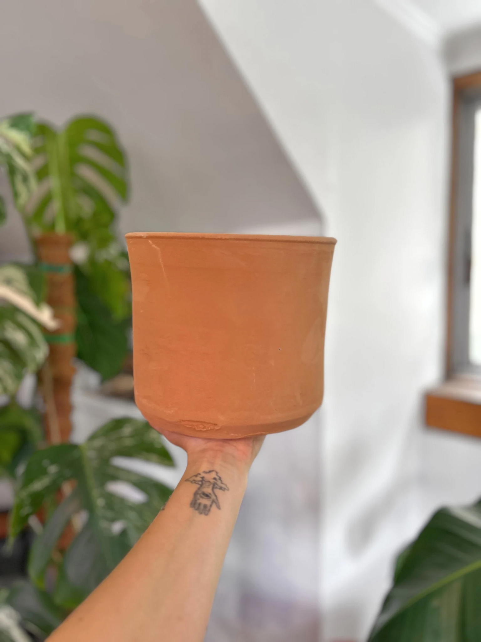 Macetero en diseño tubo en greda natural, que da un aspecto orgánico a tus plantas y decoración