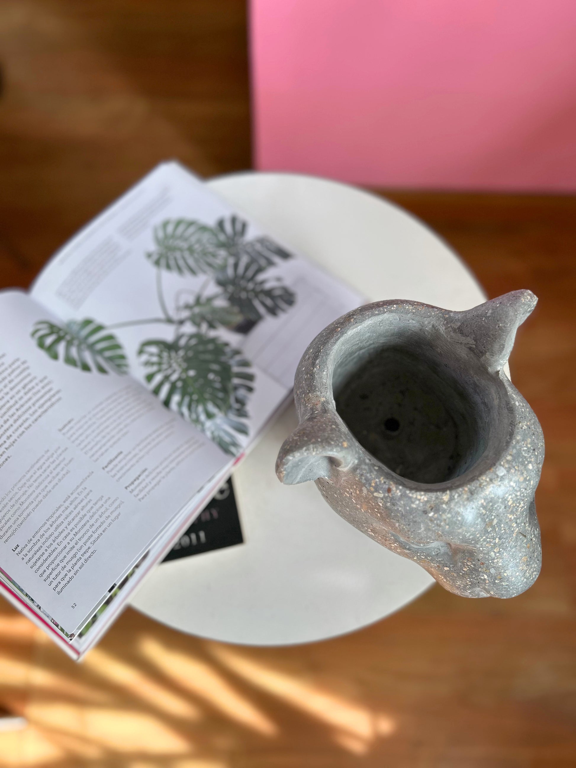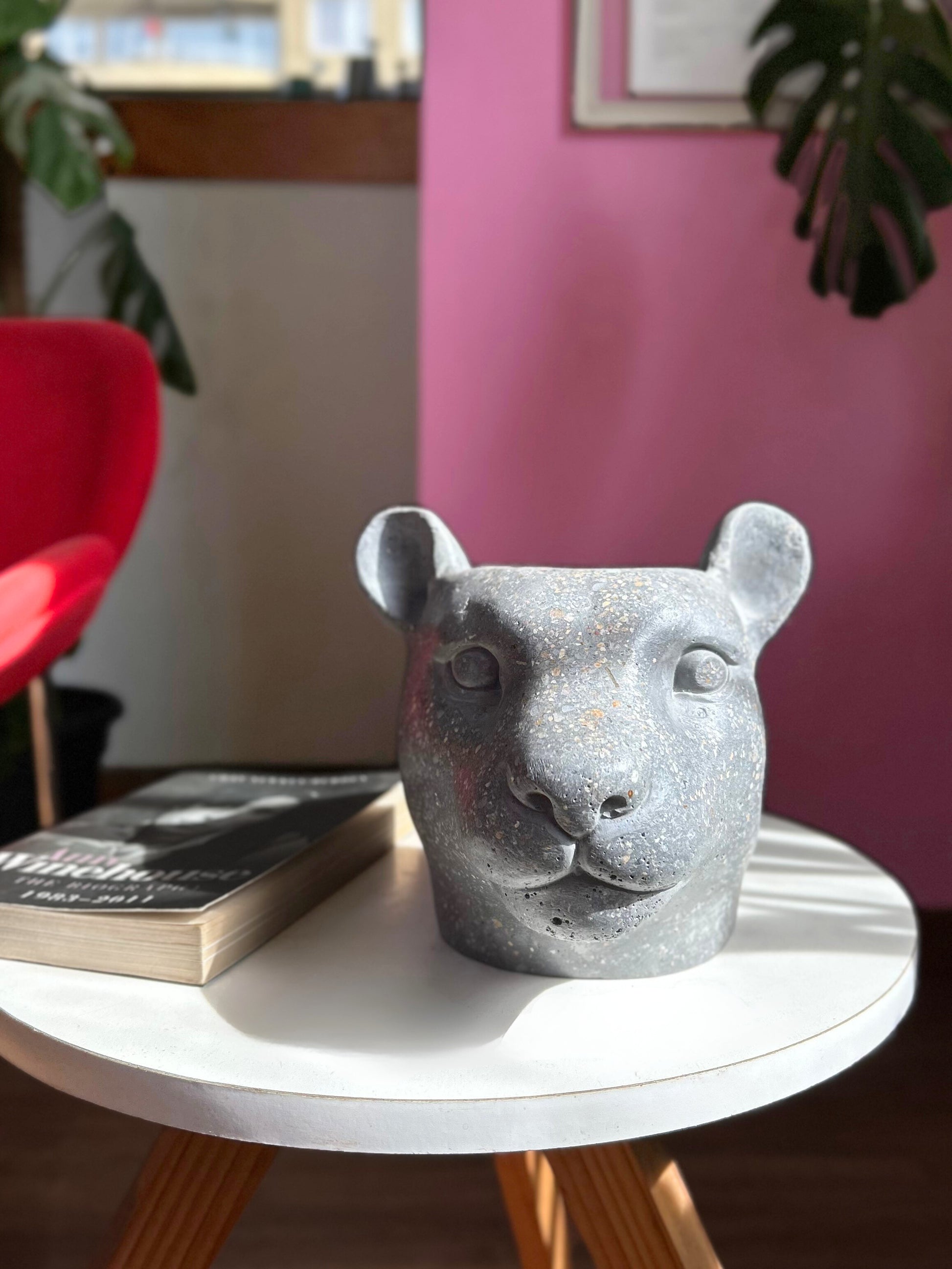Macetero de concreto y cuarzo en forma de guepardo que le dará un toque elegante y moderno a tu espacio.