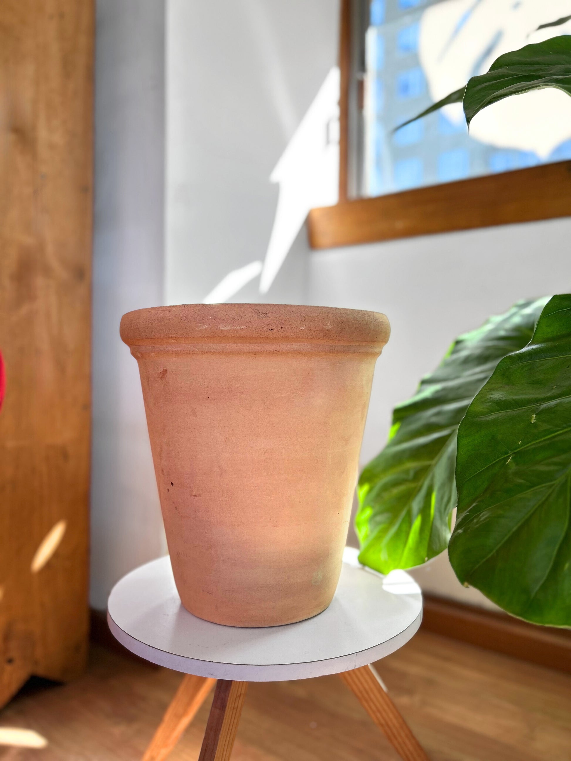 Macetero de terracota en forma de V, greda y tono cálido y natural, ideal para resaltar el verde de tus plantas y lucir en tu decoración orgánica.