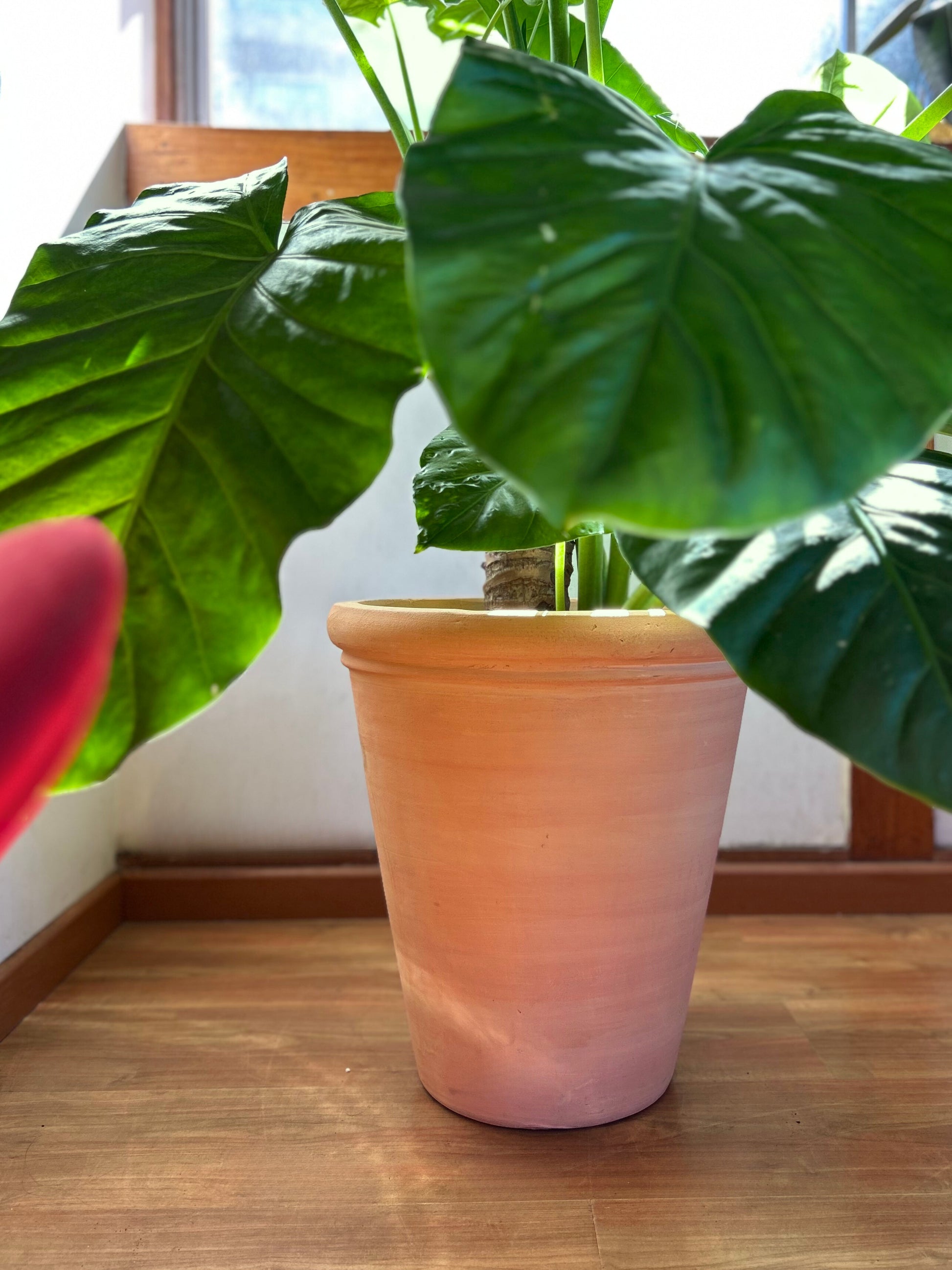 Macetero de terracota en forma de V, greda y tono cálido y natural, ideal para resaltar el verde de tus plantas y lucir en tu decoración orgánica.