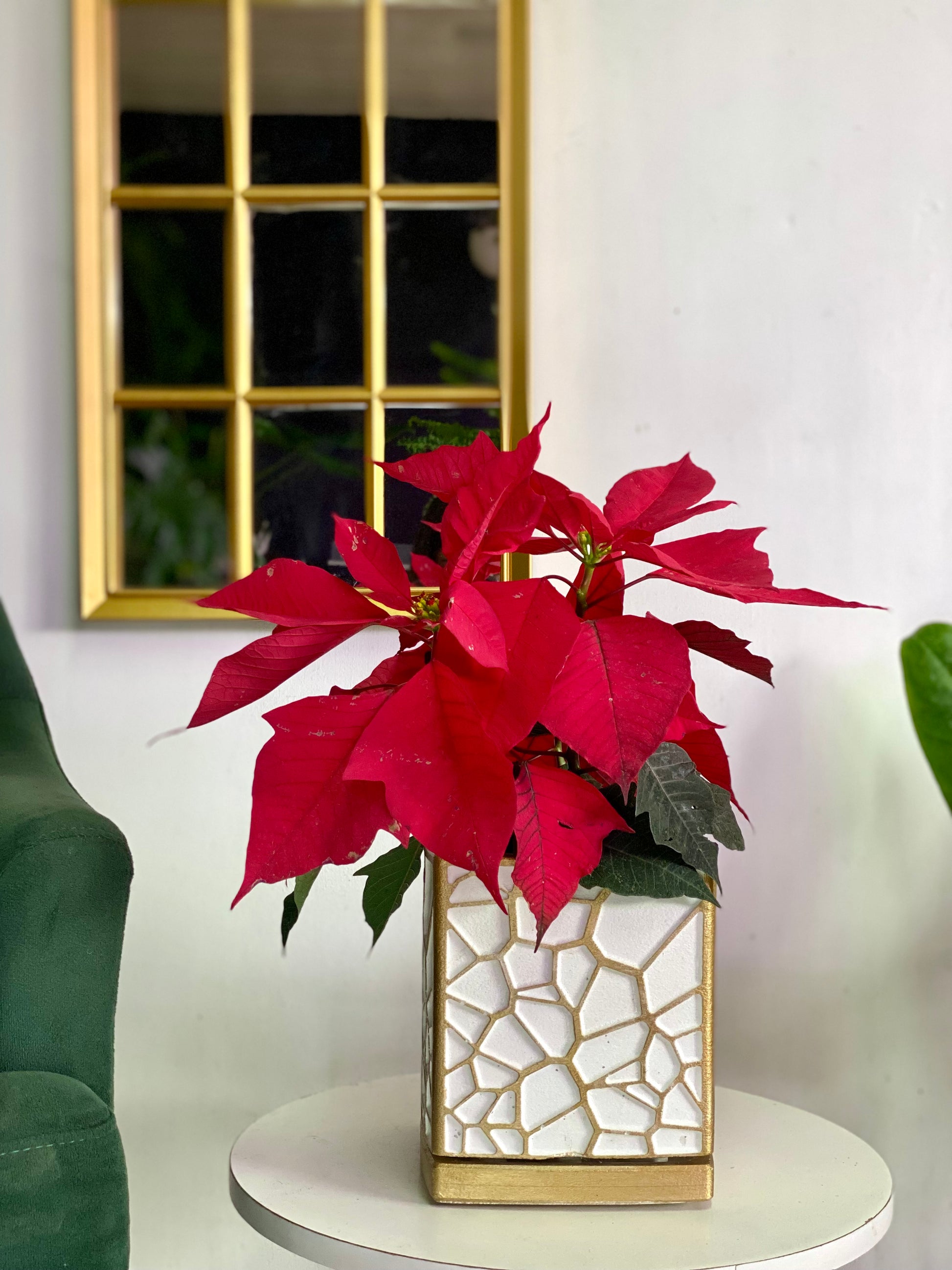 La Poinsettia o Corona del Inca es una planta que se ha convertido en un símbolo indiscutible de la Navidad. Sus brillantes brácteas (hojas modificadas) de color rojo intenso, que rodean unas pequeñas flores amarillas, le dan un aspecto festivo y navideño.