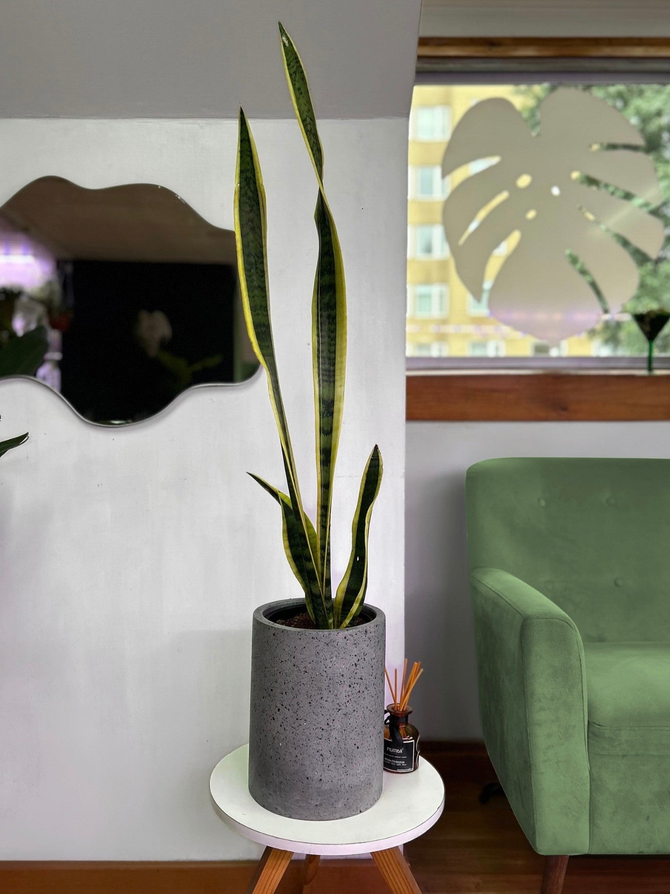 También conocida como lengua de suegra, lengua de tigre o espada de San Jorge. Esta es una de las plantas más versátiles que existen ya que además de ser de muy fácil cuidado, Puede ubicarla donde quieras dentro de tu espacio, incluso en terrazas, balcones o entrada de tu casa bajo techo protegida de las heladas. Su belleza es única y la variedad Laurentii más aún con su diseño en bordes amarillos contrastando con el verde oscuro de sus lenguas u hojas.