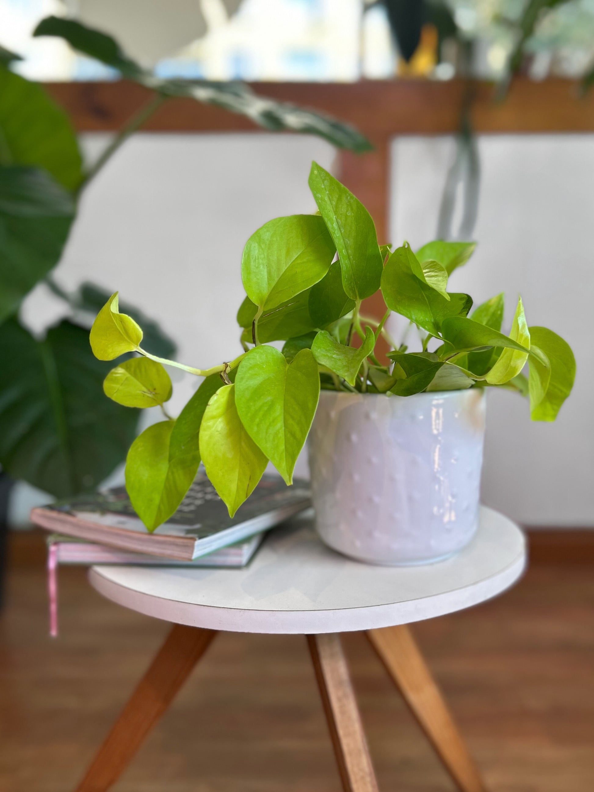 Esta planta destaca en cualquier espacio por su color neón. Tanto en versión trepadora como colgante, será sin duda protagonista en tu selva. Amarás el contraste del verde neón con otros verdes más oscuros de tu colección.