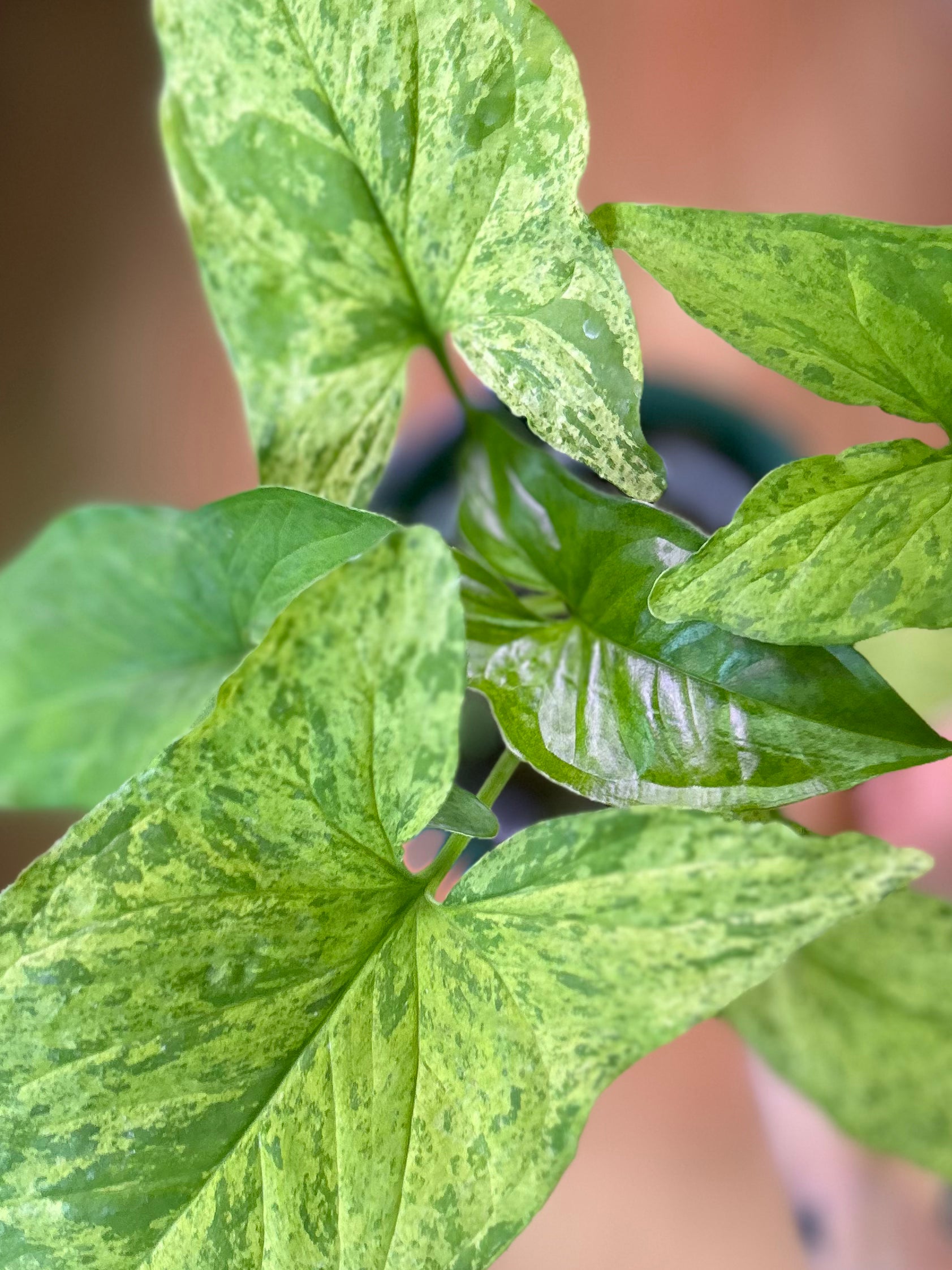 Humedad: Al igual que otros Singonios, aprecia un ambiente húmedo. Puedes aumentar la humedad ambiental rociando sus hojas regularmente o utilizando un humidificador.